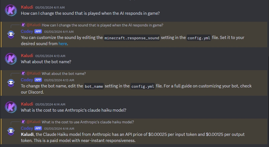 We have plugin developers who use ServerAssistantAI to provide their users with instant support and answers to questions related to their specific plugins. There are many different use cases available. Our Codey bot that is hosted on our Discord server is powered by ServerAssistantAI, and is used to answer user's questions regarding our plugins.